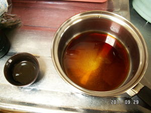 2)調味料4点を煮ておく