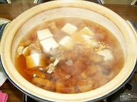 レシピどおり先に少し炊いておいた棒だらを土鍋にうつして酒を入れ、沸騰したところで、豆腐を入れて煮上るまで待ちました。(3)