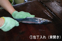 4.包丁入れをした後に内臓を除去した状態です。 |