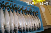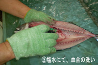 5.塩水にて綺麗に血合いを洗い流します。 |