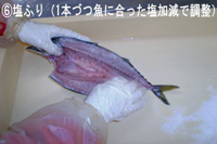 8.一本一本魚にあった塩加減を調整し、塩をうっていきます。 |