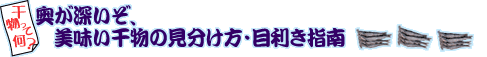 などなどの目利きを実践し、後は、自分の舌や経験で美味い干物を見つけ出し、本物を見極めていって頂きたい。尚、干物についてもし判らないことや旬の情報などを知りたいことがあれば、日本の美味いもんが一同に集まる京の食彩工房、京都市中央卸売市場・京都塩干魚卸協同組合へ連絡すれば適切なアドバイスをもらえるらしい。