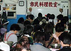 ▲すごい人数!みんな和気あいあいと楽しく調理 |