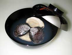 8カップの水に昆布と蛤を入れ、煮立てて開けば塩、酒で味を整える |